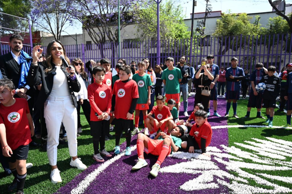 La alcaldesa Alessandra Rojo de la Vega entregó a jóvenes futbolistas de Santa María Insurgentes la rehabilitación de una cancha de fútbol en el Parque Sándalo, un espacio que vuelve a estar en condiciones para entrenar, convivir y hacer comunidad, a menos de 80 días para que inicie el Mundial de 2026 en la ciudad.