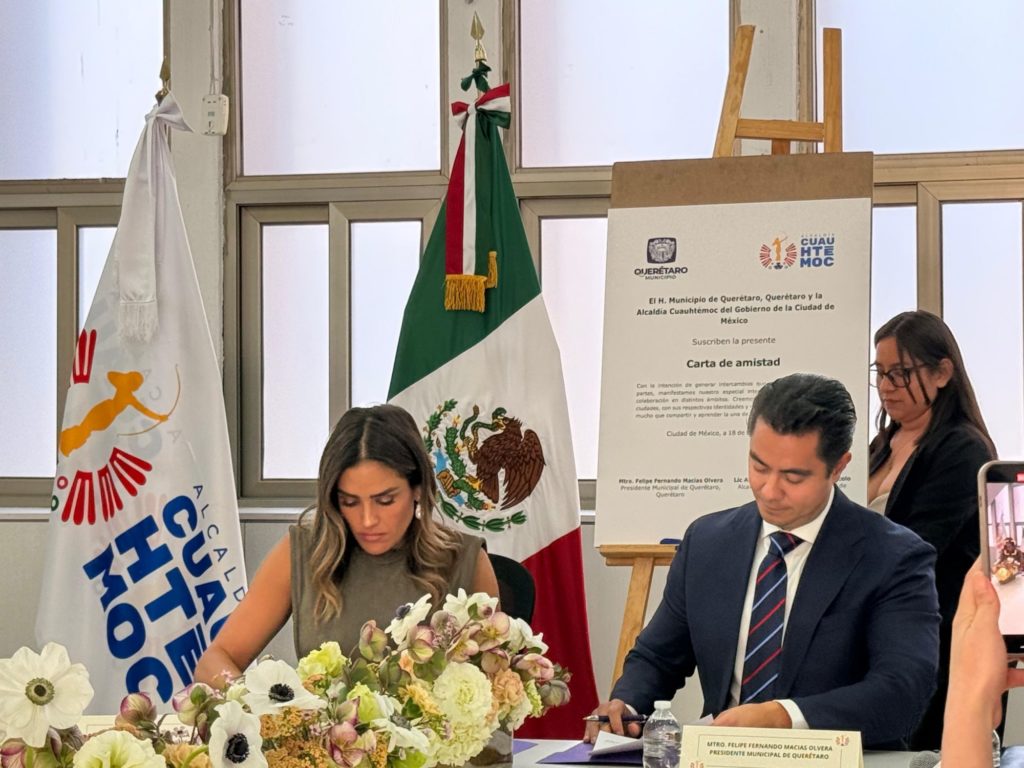 La alcaldesa Alessandra Rojo de la Vega recibió en la Alcaldía Cuauhtémoc al presidente municipal de Querétaro, FeliFer Macías, para la firma de una Carta de Amistad que establece una ruta de colaboración institucional entre ambos gobiernos.