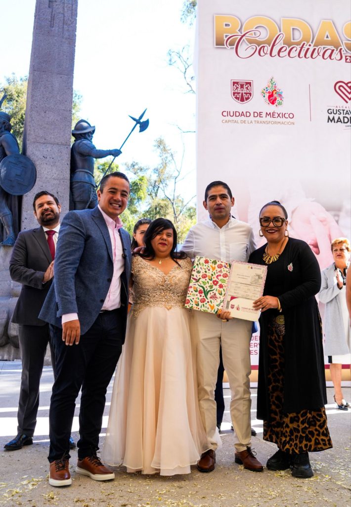 El alcalde de Gustavo A. Madero, Janecarlo Lozano, encabezó la ceremonia acompañado por la Consejera Jurídica de la Ciudad de México, Eréndira Sandoval, quienes formalizaron de manera gratuita la unión de las parejas, muchas de ellas con años de historia compartida que finalmente encontraron este momento para legalizar su compromiso.