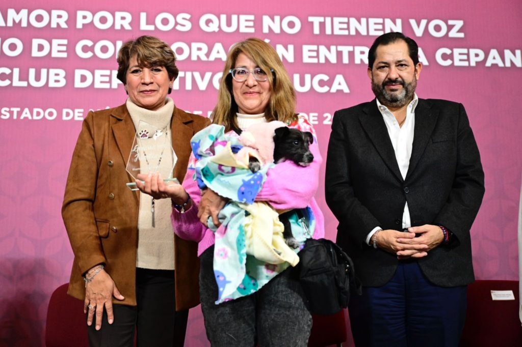 La Gobernadora Delfina Gómez Álvarez entregó reconocimientos a personas adoptantes y recibió la primera donación de la “Colecta de amor por los que no tienen voz”, por parte del Diputado Francisco Vázquez Rodríguez, Presidente de la Junta de Coordinación Política de la LXII Legislatura local, la cual fue de 2 toneladas de alimento para perros y gatos.