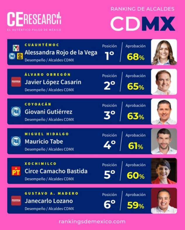 🏆 Alessandra Rojo de la Vega lidera el ranking de alcaldes en CDMX