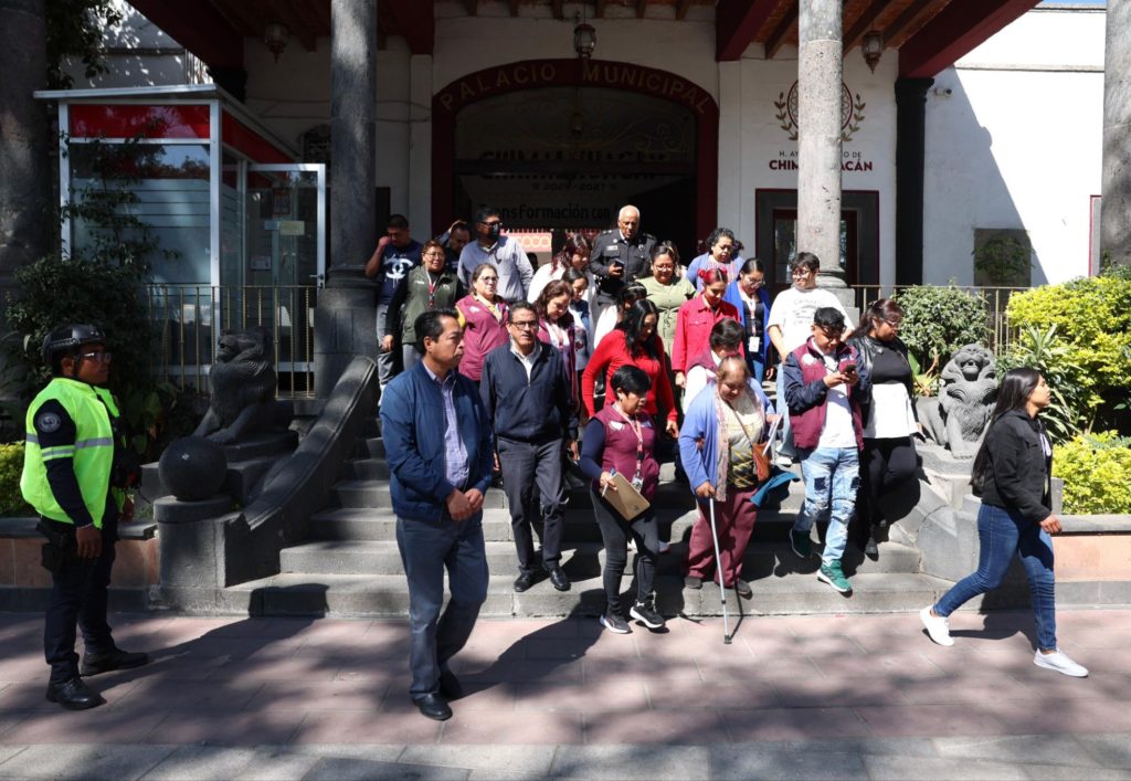 El ejercicio de prevención se realizó en 26 edificios administrativos municipales, entre ellos el C4, donde la presidenta municipal, Xóchitl Flores Jiménez, siguió el protocolo con responsabilidad y orden.