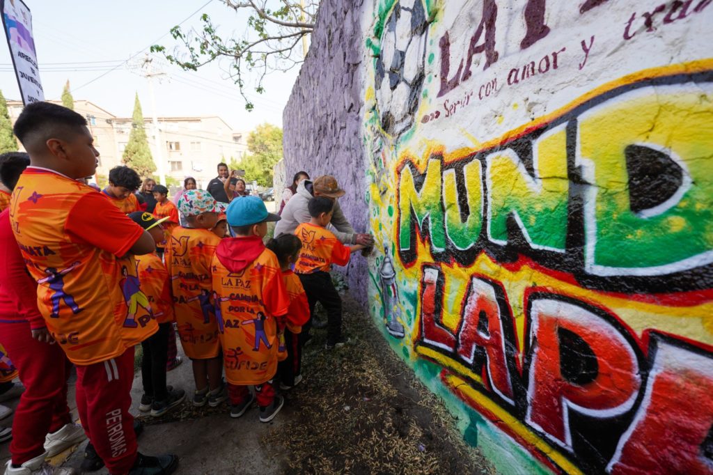 En el Deportivo Geovillas San Isidro, las actividades iniciaron con una Caminata por La Paz, seguida de la pinta de un mural denominado “Mundial La Paz”, a través del arte urbano, un torneo de basquetbol 3×3 y la recuperación de espacios públicos (canchas de futbol rápido y de básquetbol).