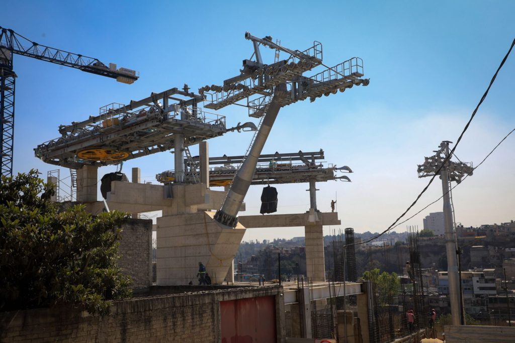 En un recorrido, que se realizó por las 10 estaciones del Mexicable Línea 3 previstas en un inicio, se pudo observar los avances en la colocación de estructuras y postes que ya marcan la línea del recorrido.