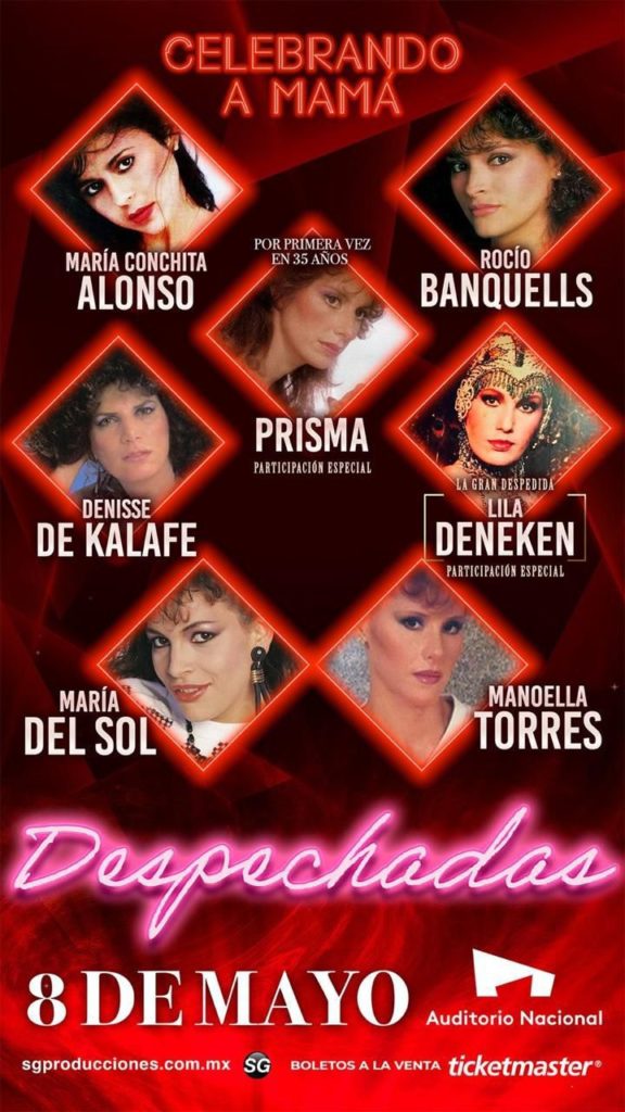 Debido al rotundo éxito que las últimas ediciones del concepto “Despechadas” ha logrado, se renueva para ofrecer una fecha más el próximo 8 de mayo para festejar a las Mamás, de la mano de las grandes intérpretes de la balada de los 80s como María Conchita Alonso, Rocío Banquells, Denisse de Kalafe, María del Sol y Manoella Torres para interpretar los clásicos que no pasan de moda.