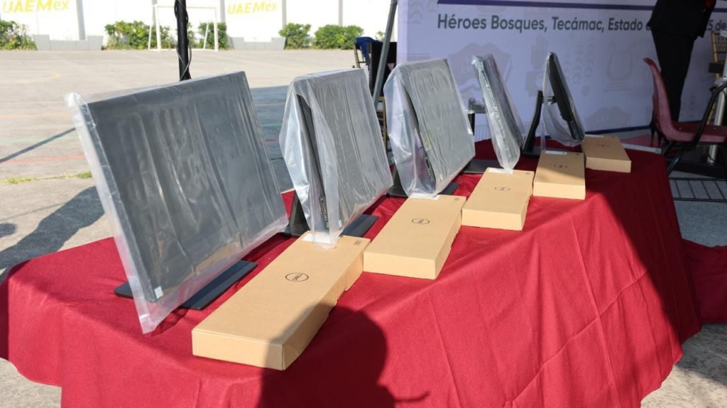 En tanto, en la Escuela Preparatoria No. 11 de la Universidad Autónoma del Estado de México (UAEMéx), entregó 50 computadoras y 100 pupitres.