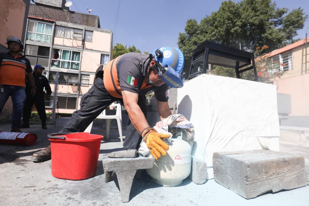 Durante el ejercicio se recrearon diversos escenarios de emergencia que permitieron poner en práctica los protocolos de actuación, entre ellos la atención de una persona lesionada por la caída de una marquesina con heridas en la cabeza, la simulación de una fuga de gas con presencia de fuego, así como la atención de una persona con contusión en el hombro, además de la evacuación del jardín de niños y la primaria, donde se aplicaron correctamente los protocolos de seguridad.