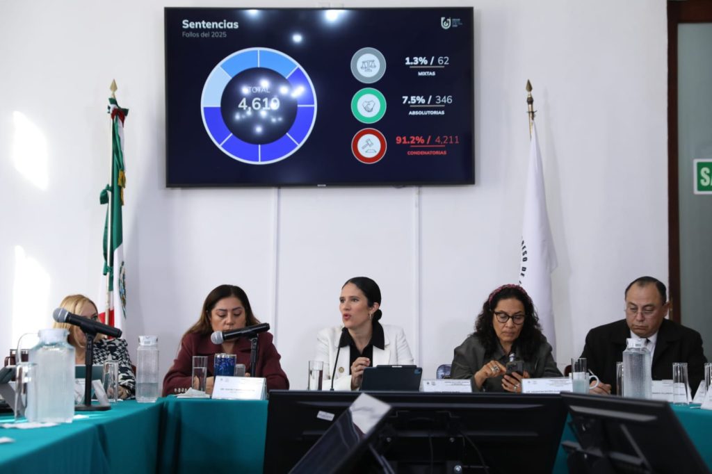 Asimismo, destacó el aumento en la ejecución de órdenes de aprehensión con un crecimiento del 17% respecto de 2024, al pasar de 5 mil 306 a 6 mil 218 órdenes ejecutadas en lo que va del año. Por otro lado, se obtuvieron 4 mil 619 sentencias, de las cuales el 91.2% fueron condenatorias, lo que refleja la solidez y calidad de las investigaciones ministeriales.