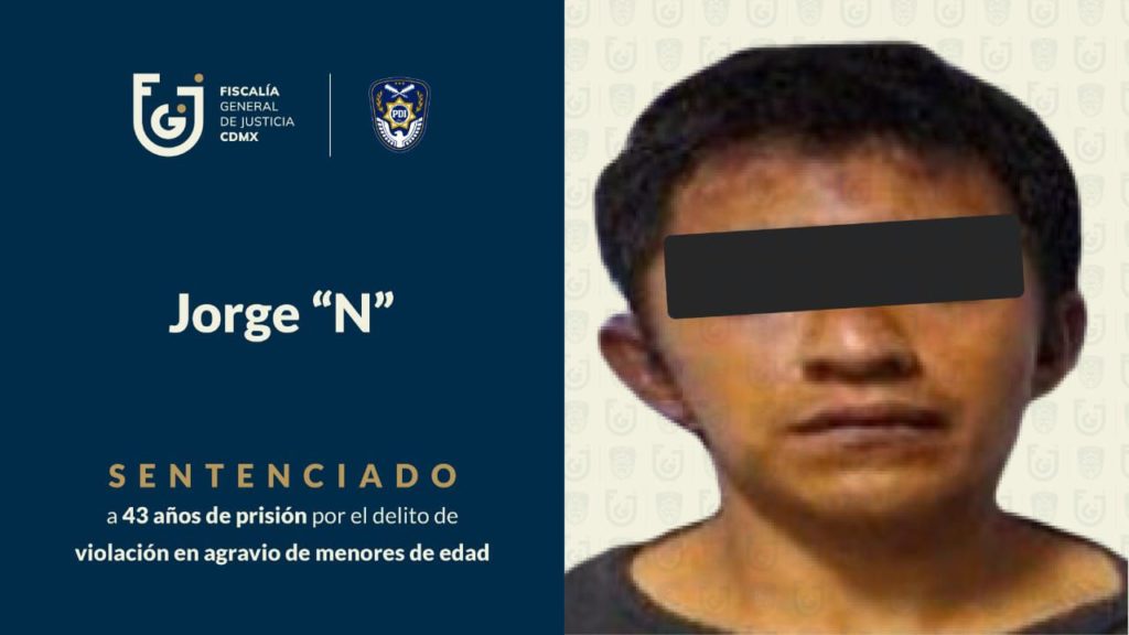 La Fiscalía General de Justicia de la Ciudad de México (FGJCDMX) obtuvo sentencias condenatorias de más de 40 años de prisión contra dos individuos identificados como Andrés “N” y Jorge “N”, quienes en juicios distintos, fueron declarados penalmente responsables del delito de violación en agravio de personas menores de edad.