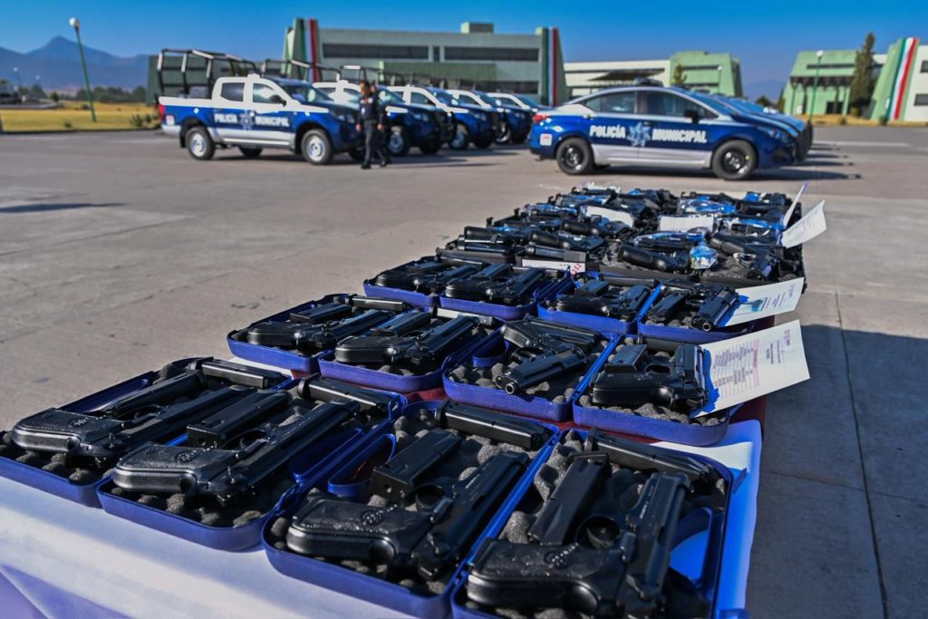 Durante la Ceremonia de Graduación en la Zona Militar 37 en Huehuetoca, la Mandataria estatal entregó 119 patrullas y 450 armas a 85 municipios, adquiridas por Fondo de Aportaciones para la Seguridad Pública.