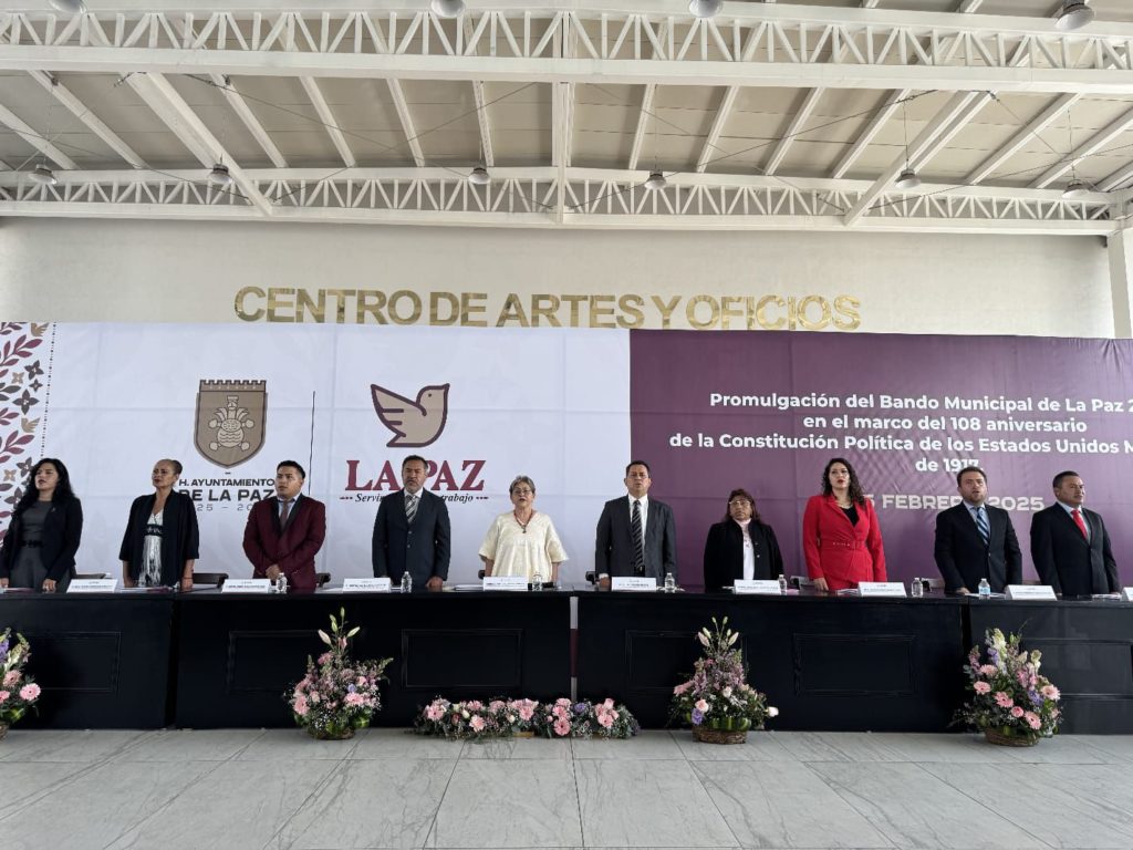 En el marco del 108 aniversario de la Constitución Política de los Estados Unidos Mexicanos de 1917, el Ayuntamiento de La Paz promulgó el Bando Municipal 2025, con el objetivo de fortalecer la protección social, prevenir la violencia y garantizar la seguridad de sus habitantes mediante normas claras y mecanismos de atención eficientes.