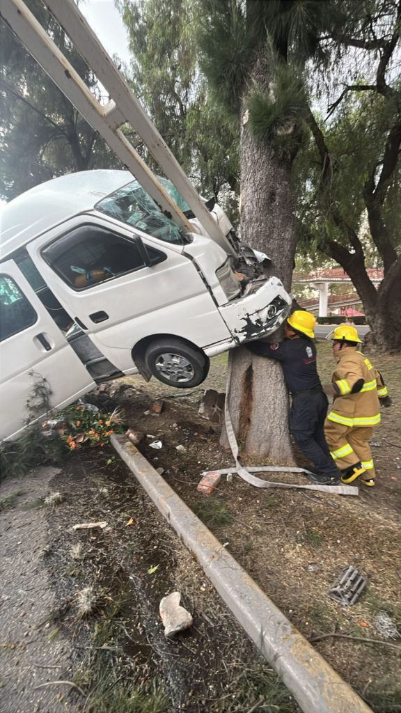 El Ayuntamiento de Tecámac, a través de la Dirección de Protección Civil, atendió de manera inmediata un accidente ocurrido en el kilómetro 36 de la carretera federal México–Pachuca, a la altura de la colonia 5 de Mayo, donde una combi se impactó de frente contra un árbol y derribó una luminaria.