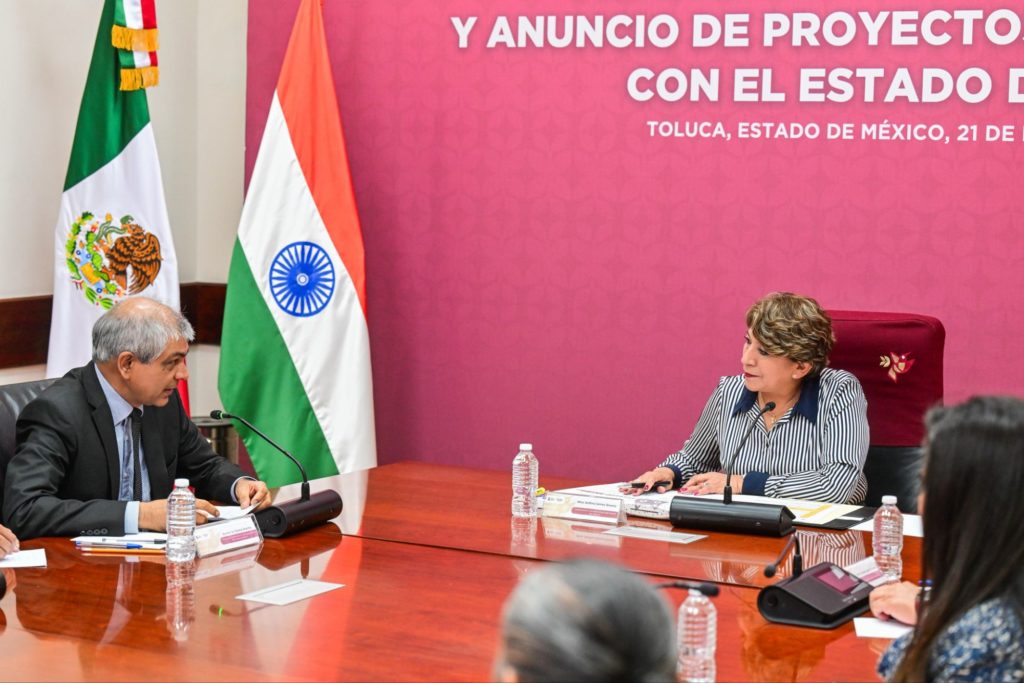 La Gobernadora del Estado de México, Delfina Gómez Álvarez recibió a una delegación de empresarios de la India, encabezados por el embajador de ese país en México, Pankaj Sharma, en la que se formalizaron proyectos de cooperación que fortalecerán la educación digital y capacitación agrícola en la entidad mexiquense.