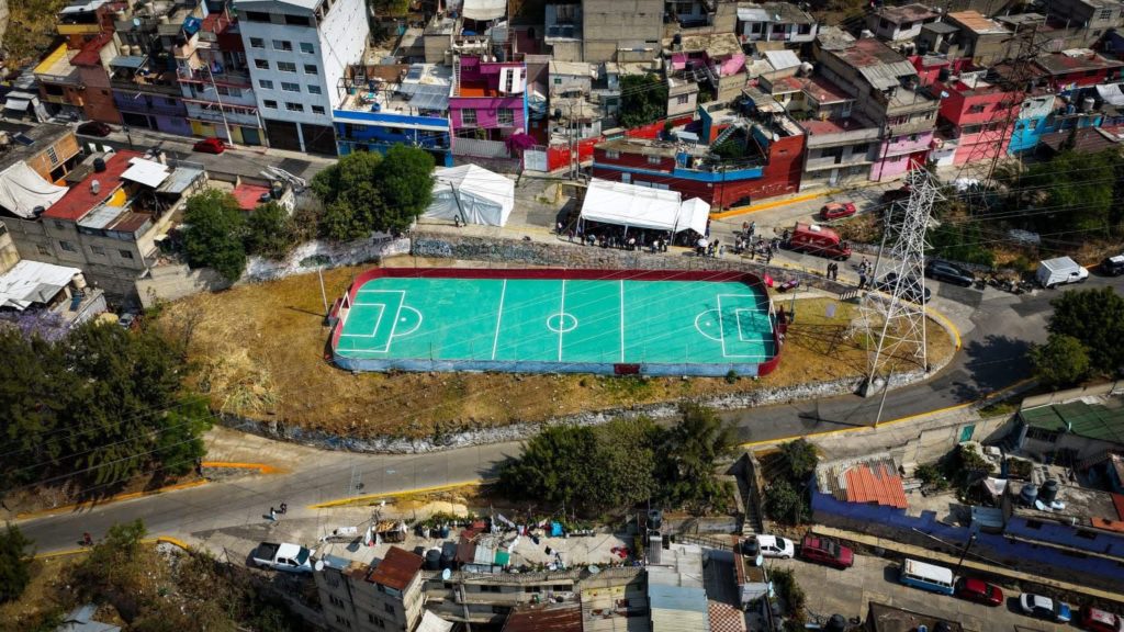 El alcalde Isaac Montoya Márquez, encabezó la Mesa de Paz Itinerante y la jornada de Atención a las Causas con la actividad ¡Que Ruede el Balón por la Paz!, impulsada por el Gobierno de México en San Rafael Chamapa Primera Sección, donde entregó la cancha conocida como Pascualito y señaló que, como parte del Mundial Social y el programa municipal Huellas del Mundial, se contempla rehabilitar más de 50 canchas deportivas y espacios, donde todas y todos tengan oportunidad de realizar deporte.