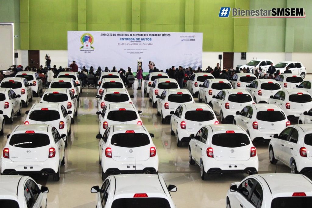 El Sindicato de Maestros al Servicio del Estado de México (SMSEM) concluyó la entrega de 125 automóviles Nissan March modelo 2025, correspondientes a los premios mayores de las rifas realizadas durante el festejo del Día del Maestro 2025 en las 14 regiones sindicales.