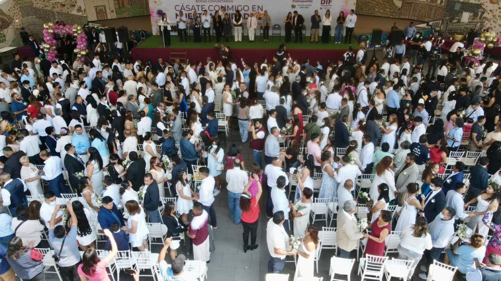 Raciel Pérez Cruz, acompañando de la presidenta Honoraria del DIF Municipal, Rocio Pérez Cruz, explicó que el matrimonio civil es una institución que requiere respeto, apoyo mutuo y una visión compartida, elementos fundamentales para que Tlalnepantla tenga una sociedad más justa y ordenada.