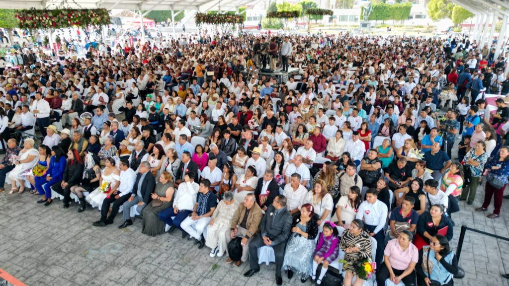 El Presidente Municipal de Nezahualcóyotl, Adolfo Cerqueda, encabezó la ceremonia de los Matrimonios Colectivos Neza 2025, realizada en la Explanada del Palacio Municipal, donde 700 parejas formalizaron su unión, incluyendo nueve matrimonios igualitarios.